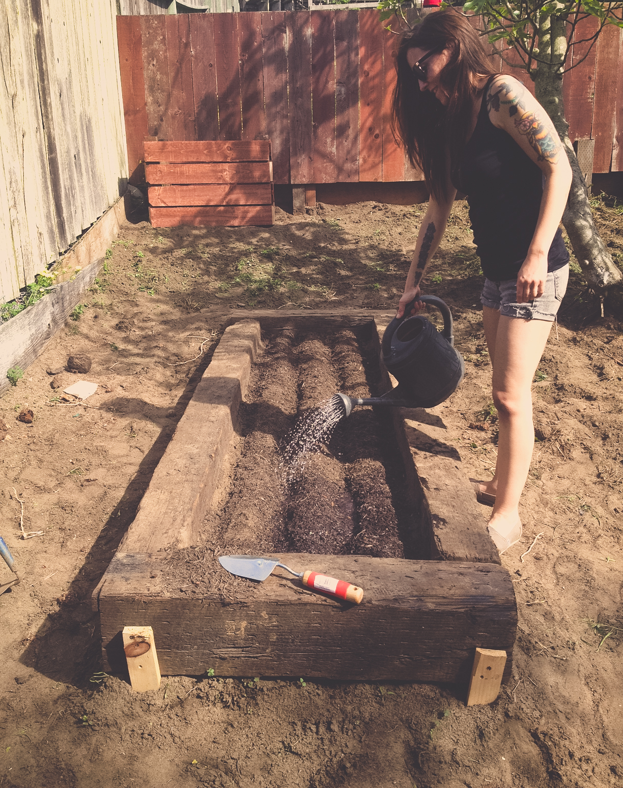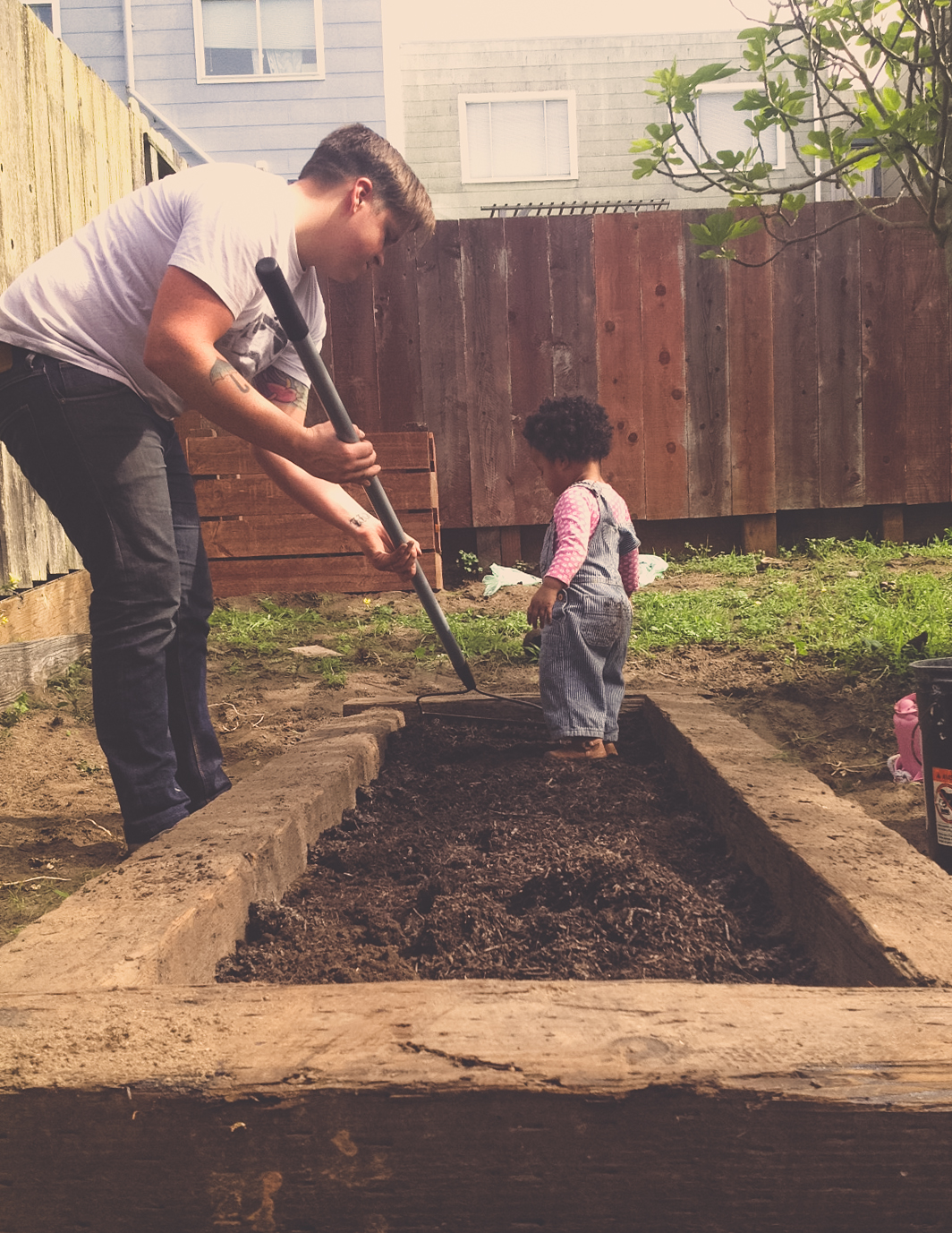 This week we planted a garden in our backyard. We have been wanting to do a garden ever since we moved into this house. We are very lucky to have a backyard in sf, and even more lucky to have enough space to do a garden. Last week casey made these great raised beds, and this week with the help of some of our friends we tackled the weeds, the digging and the planting. We can only cross our fingers and hope that the kale, the arugula and all the root vegetables we planted will actually grow out here in this fog.