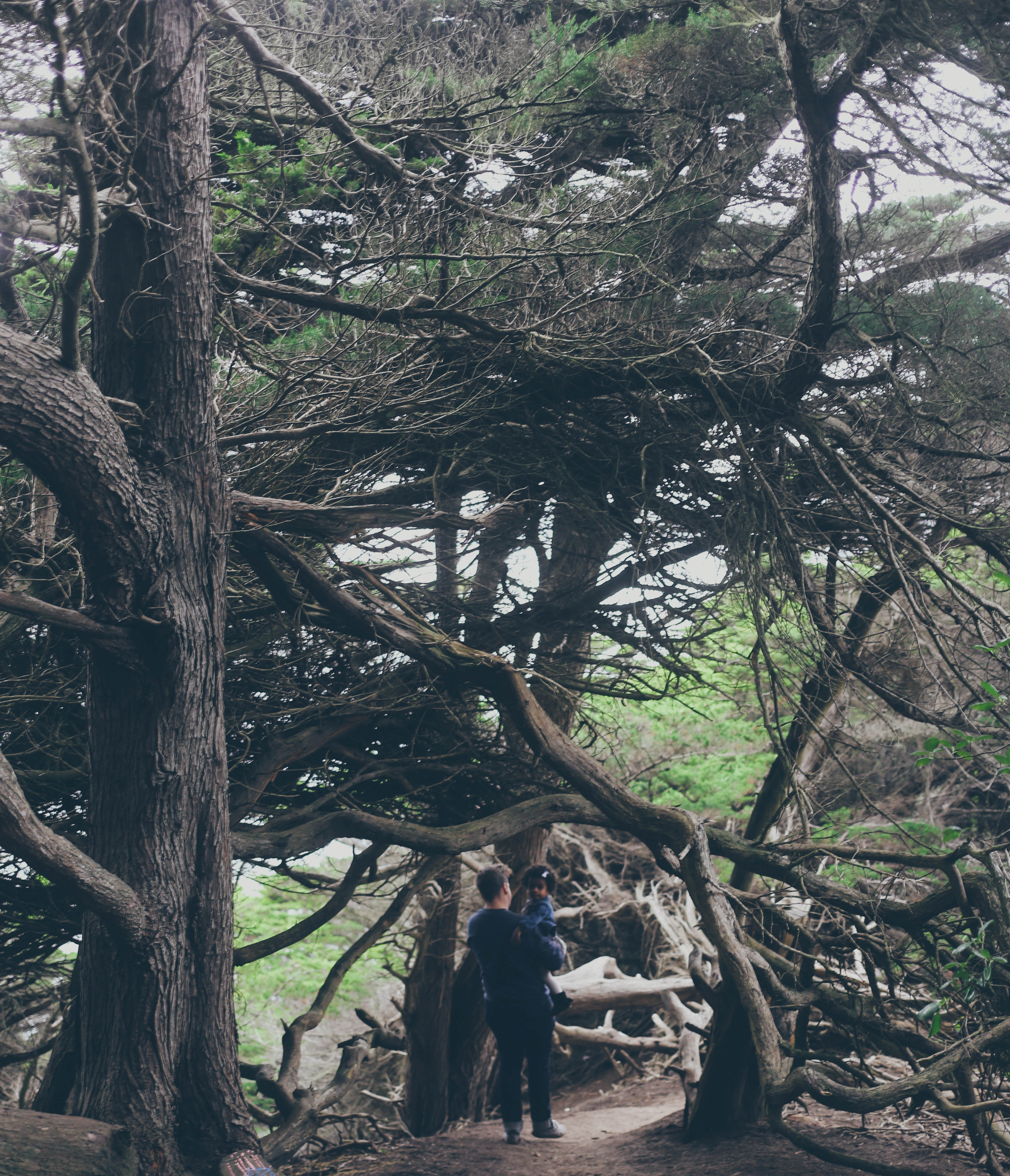 A couple of days ago we went on a walk, Mari needed to run out all her two year old energy, and I needed fresh air and a clear head, for me that is being in the fog. So we bundled up, and found a beautiful trail in Lands end just minutes from our house. It was amazing. The fog was just coming in and began to cover the Golden Gate bridge like a blanket. The air was moody, the sky was still, and the mist danced on our eyelashes.
